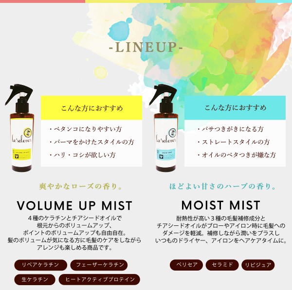 水、エタノール、グリセリン、BG、ジメチコノール、サルビアヒスバニカ種子油、ジラウロイルグルタミン酸リシンNa、ヒドロキシプロピルトリモニウム加水分解ケラチン(羊毛)、ポリクオタニウム-51、ヒドロキシプロピルキトサン、セラミユボダイジュ花エキス、ローマカミツレ花エキス、コレステロール、クオタニウム-18、クオタニウム-33、(C12-14)パレス-12、PG、ラウリル硫酸Na、ラウレス硫酸Na、硫酸Na、フェノキシエタノール、メラルパラベン、エチルパラペン、ブチルバラベン、プロピルパラベン、香料 |