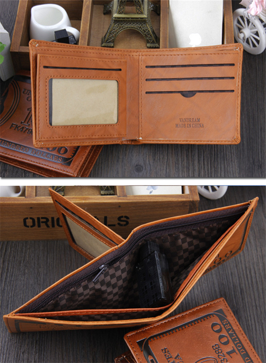 It’s inner structure is one zipper pocket, two photo slots, four card slots, two money pockets. You can put money, photos and card in it.