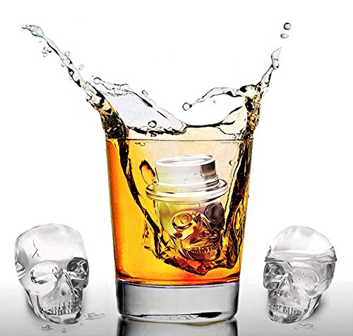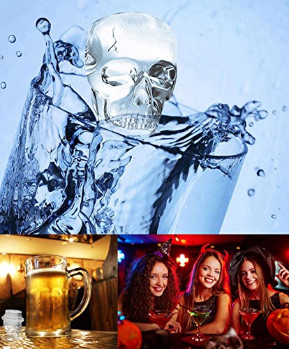 Skull Ice Tray, Skull Ice Molds, Halloween decoration, Knowless 3D Flexible Silicone Ice Tray, Cooling for Red Wine, Vodka, liquor, whiskey,Soft drinks.