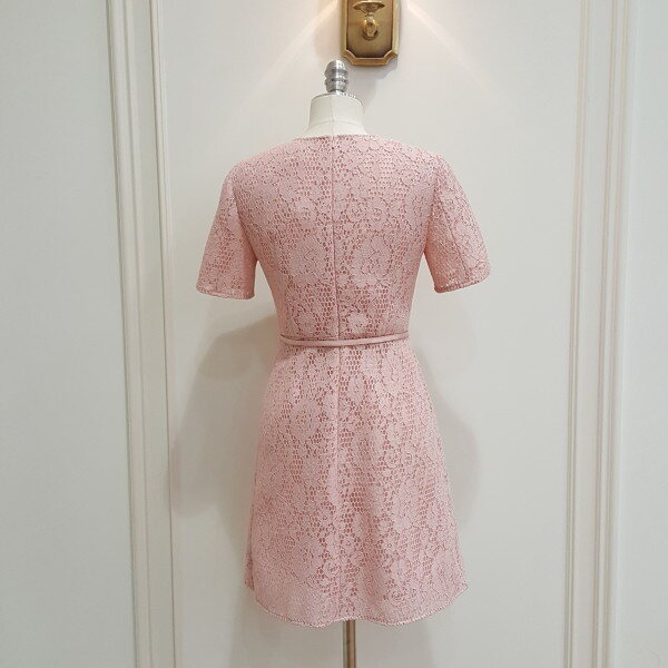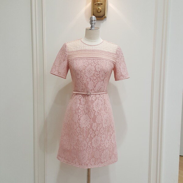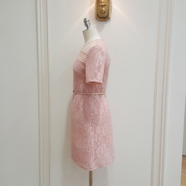 레이스원단이 본딩되어있는 도톰한 두께의 레이스원피스로 착장시 라인을 잡아주는 깔끔한 세미A라인. 상동요크쪽은 시원해보이는 다른느낌의 레이스를 매치로 포인트를 줌