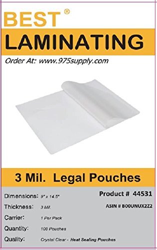 Best Laminating - 3 Mil Clear Legal Size Thermal Laminating Pouches - 9 X 14.5 - Qty 100