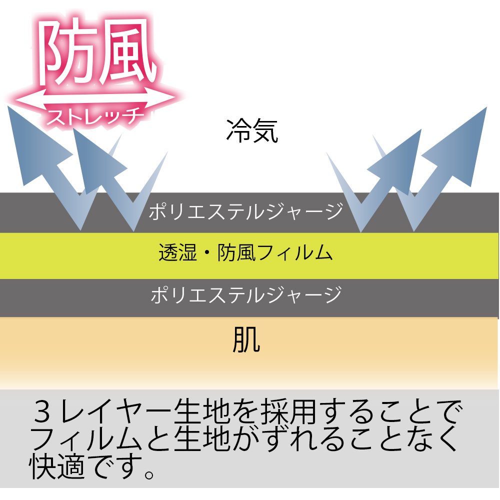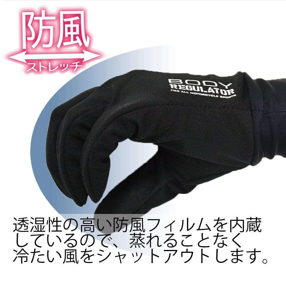 It is a high-functional stretch inner glove with built-in windbreak film that shuts out a thin but cool wind.