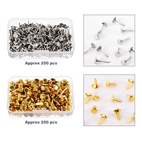 Shappy 500 Pieces Paper Fasteners Brass Plated Scrapbooking Brads Round Metal Brads with Storage Box for Crafts Making DIY, Gold and Silver