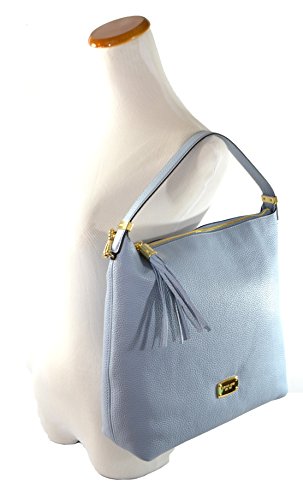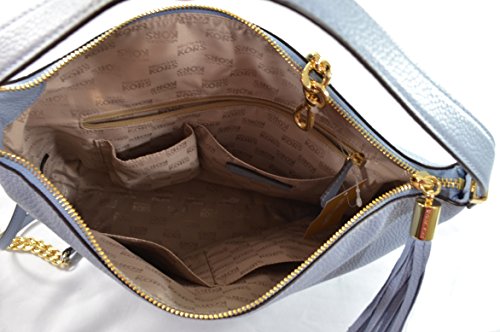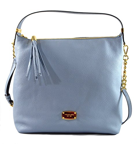 -. Brand : -. Color : Pale Blue -. Department : womens -. EAN : 0190049401996 -. Feature : 12"H x 13"W x 4"D / Soft pebbled leather with golden hardware / Wear crossbody or over the shoulder with removable and adjustable chain and leather strap / Top zip closure with leather tassel / Inside, monogram lining; one zip and four open pockets -. ProductGroup : Shoes -. ProductTypeName : HANDBAG -. Size : Medium -. Title : Bedford Large Pebble Leather Shoulder Crossbody Bag, Pale Blue -. UPC : 190049401996