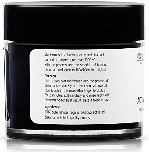 Blackwoods - Eco Pure Natural Japanese Teeth Whitener Bamboo Black Charcoal Powder - Teeth Whitening Activated Charcoal Powder - Organic/1.2 oz