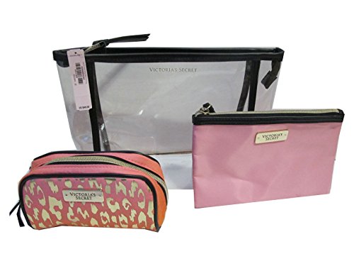 -. Title : Victoria's Secret Clear Leopard Makeup Cosmetic Trio Bag (Pink)