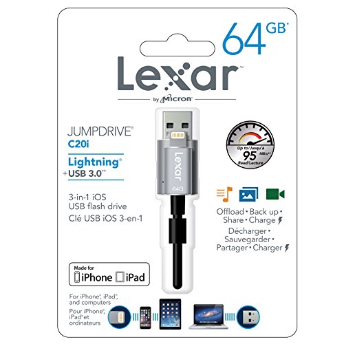 ◆ in Lightning and USB 3.0 both connectors that can be used in 3-in-1 iOS flash memory go easily add storage increase the memory of the iPhone and iPad you can also be charged to the on the device. ◆ speed transfer and cooperation to download the free file management application from up to read 95MB / s expanding the memory of writing 20MB / s ◆ iOS device ◆ Free file management app corresponding App Store safely file on the go you can automatically synchronize. / ■ Specifications ■ Capacity: 64GB Interface: USB3.0 / Lightning maximum read speed: 95MB / s maximum write speed: 20MB / s /