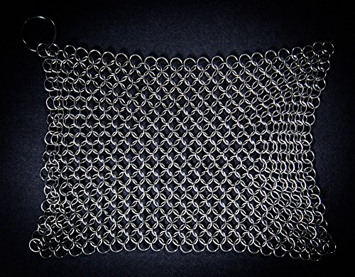 SUPER SALE QLTY FIRST CAST IRON CLEANER - MADE OF X-LARGE PREMIUM STAINLESS STEEL CHAINMAIL SCRUBBER, INCLUDES A HOOK AND A DISH DRYING CLOTH