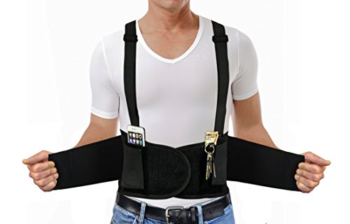 -. Feature : ULTIMATE COMFORT WITH PAIN RELIEF: Your health is our P.R.Iority now. Highest quality Back Brace Support belt for treatment of Sciatica, Scoliosis, Herniated Disc or Degenerative Disc Disease designed keeping in mind your safety and comfort. A back brace lumbar support with adjustable suspenders and Velcro for easy and quick fastening. / FORGET THE NIGHTMARE OF A SLOPPY BELT THAT CAUSES RASHES: A back pain relief belt that doesn't cause rashes or doesn't just slip every ten seconds. It gets attached to your body just like your skin. / TRENDY PREMIUM QUALITY BACK BRACE: The only premium quality back brace with two pockets for working people. Now carry your phone, IPod in your back support brace comfortably. / DON'T LET YOU BACK PAIN STOP YOU FROM YOUR DAILY ACTIVITIES: A comfortable back brace to wear while running, exercising, and working out. Now go get going with you brace support on. / A BACK BRACE SUPPORT WITH TWO POCKETS: A back relief belt with two pockets on the left and right. Just to keep your essentials. Run, lift, bend, jump and do much more hassle free because the specially designed pattern will ensure that nothing falls off from your pocket.