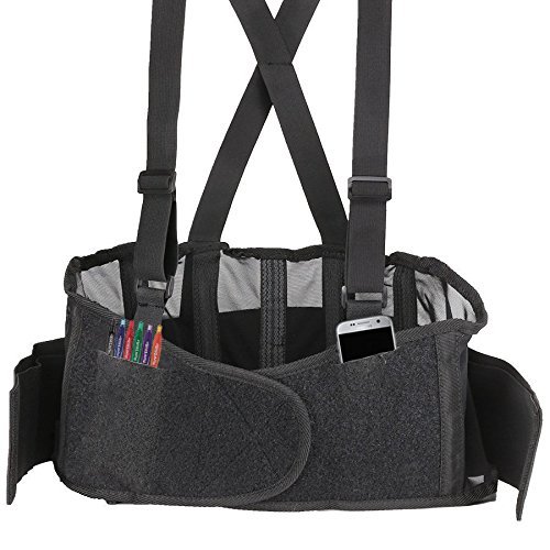 -. Title : Back Brace Lumbar Support - Back Pain Relief Belt With Quick Fastening Velcro, Adjustable Suspenders And Easy Accessible Pockets On Both Sides For Securing Your Phone And Ipod.