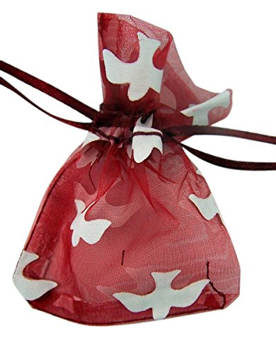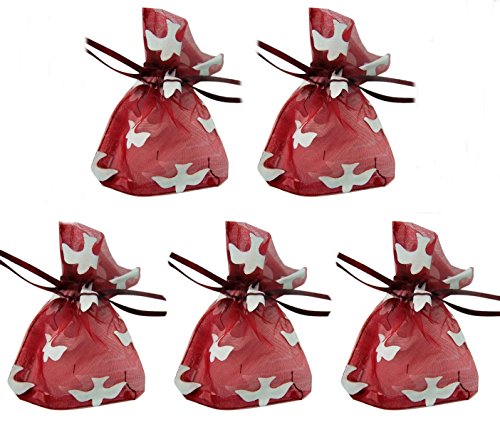 Red Confirmation Organza Rosary Gift Bags with Holy Dove Design, 4 Inch, Pack of 5