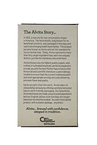 -. Binding : Health and Beauty -. Feature : 24 tea bags per pack / Caffeine free / English pillow style tea bags that are oxygen bleached, not chlorine treated / No strings, No staples / Vegan and gluten free -. ProductGroup : Health and Beauty -. ProductTypeName : HEALTH_PERSONAL_CARE -. Title : Alvita Dandelion Root Tea Bag, Organic, 24 Tea Bag