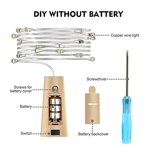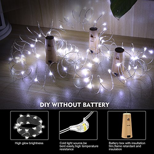 Widely DIY: Battery Powered Wine Bottle Lights can be Easily Designed to any DIY Shape You Love. Suitable for Party, Wedding, Barbecue, Halloween, Christmas Tree, Square, Garden, Indoor and kitchen, patio Decoration, etc. It is also a good gift for your Kids, Friends and Families.(NOTE:NOT INCLUDED THE BATTERY)
