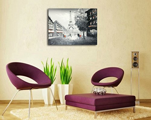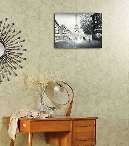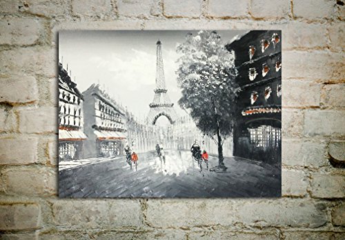 - Title : OO Art-Oil Paintings 100% Hand Painted Streetscape on Canvas Stretched Ready to Hang Paris Eiffel Tower Wall Pictures Home Decor Gift(Black and White)