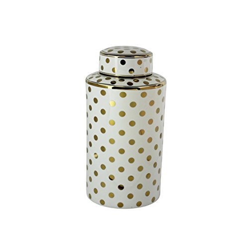 Sagebrook Home Decorative Ceramic Covered Jar, 7x7x11.75, White/Gold