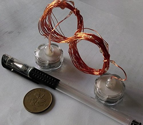 The fairy lights are on a thin, flexible copper wire and can be easily molded around your wedding table decorations. Also great for fairy gardens.