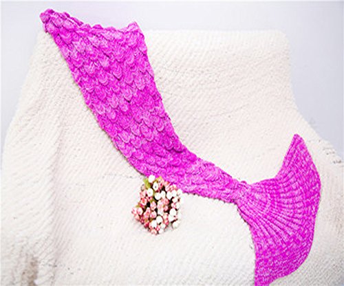 Coroler Kids Crochet Mermaid Tail Blanket with Scales Patterns All Seasons,Rose Pink