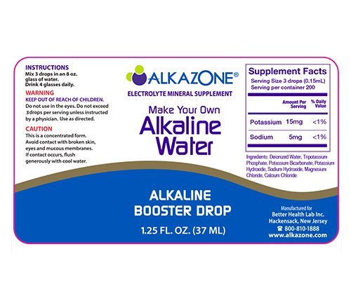 Alkazone Alkaline Booster Drops 200 ~ 240 serving per pack Make Your Own Alkaline Water As one of the Pioneer's in the Alkaline / pH industry. We are proud to bring you our Alkaline Booster Drops ! In addition to Balancing your Body's pH , Alkaline Booster Drops neutralize and reduce acidic wastes. Helping you achieve peak performance to lead a healthy & balanced life. Why Alkazone® Alkaline Booster? As the old saying goes ...an ounce of prevention is worth a pound of cure. Alkazone® Alkaline Booster Drops are a mix of essential minerals in the form of colorless, odorless, tasteless drops. Just by simply adding 3-4 drops to an 8oz glass of water, it increases the pH in your water to about 8-10 pH. The minerals in our drops also buffer the acidity from in our body's which are usually enhanced by eating certain foods and drinks that are high in acidic value. Drinking a balanced Alkaline pH water is the easiest way to deliver important minerals into the body. Alkazone Alkaline Booster Drops Detoxify the acidic wastes to effectively remove the toxic deposits out of the body. Improves natural bodily & cellular function ,mineral buffering from acidic foods to help maintain healthy bones as well as quicker recovery from physical and strenuous activity Detox for Life ! The simplest way to make your own alkaline water! Alkazone® Alkaline Booster is made from organic potassium substances such as potassium bicarbonate, potassium lactate, potassium citrate. The small 1.25 oz bottle also makes it ideal for travel and those on the go. One single bottle is a 60-70 day supply based on 4 servings per day - 200 ~ 240 servingsFeature