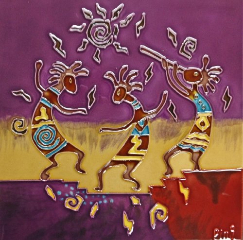 Continental Art Center BD-0717 8 by 8-Inch Three Kokopellis with Purple Background Ceramic Art Tile
