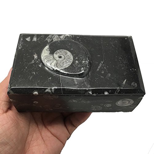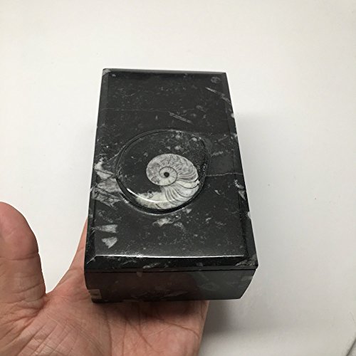570 Grams, 5" x 3" x 2" Rectangle Shape Orthoceras Handmade Brown Jewelry Box from Morocco, MF750
