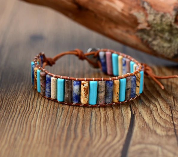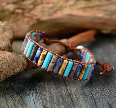 inspirational leather bracelets:wrap bracelet with stones