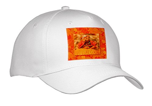 Binding : Apparel Product Description Little Girl Teddy Bear on a Pumpkin with Autumn Leaves Cap is a custom printed image affixed to a commercial quality 100% preshrunk cotton twill. Whether you are just kicking back or a real sportsman this hat is perfect for any lifestyle. The adult cap features a Velcro closure and the youth cap features a snap closure. Both sizes are adjustable. 0