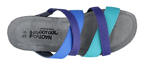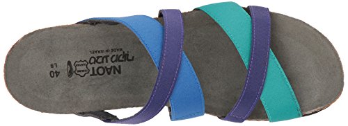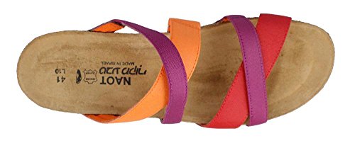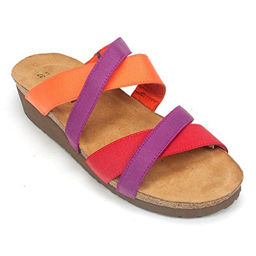 Product Description The Roxanna is a fashionable slide with contrasting colors. This style has padded technical lining creating comfort and absorbing moisture. The Roxana features gore at the instep and front straps for adjustability. Naot's anatomic cork and latex footbed is wrapped in a pampering suede and molds to the shape of the foot with wear. Material: Leather, Suede, Cork, Latex. 0
