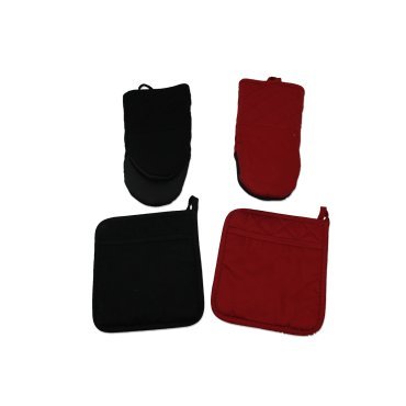 - Set of 2 pieces includes one oven mitt and one pot holder of the same color