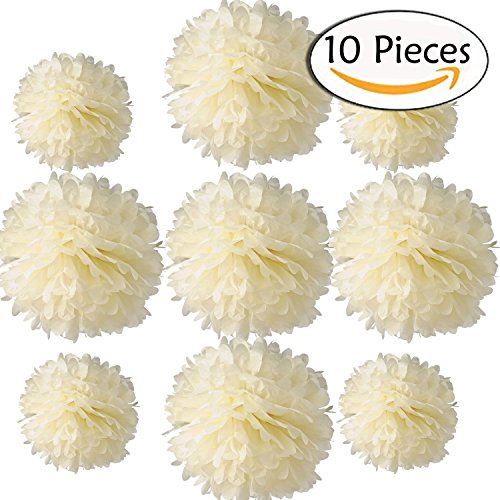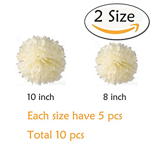 10 PCS Ivory Tissue Paper Flowers Kit-8" 10" Tissue Paper Pom Poms Party Decorations for Weddings, Birthday Parties and Baby Showers