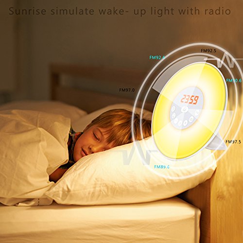 - Sunrise/Sunset Simulation -- The wake up light will be on from 1% of the brightness to 100% at set time to bring you out of deep sleep gently to welcome a refreshed day; And Sunset function will guide you to natural, restful sleep.