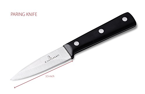 - 3.5'' Paring knife: :ideal for sharp, precision cut of essentially soft skinned, delicate foods (plums, tomatoes), as well as small scale de-boning.