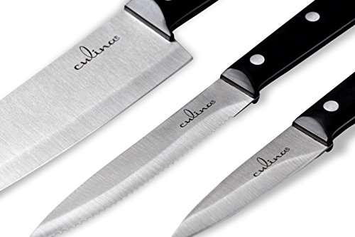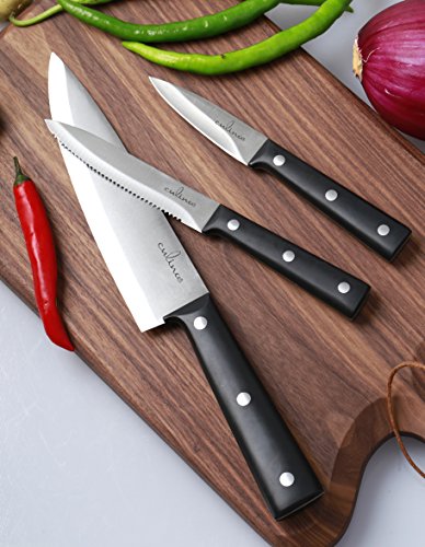 Culina Chef Knife Set is the ideal full tang trio designed to suit all of your cooking prep. needs.