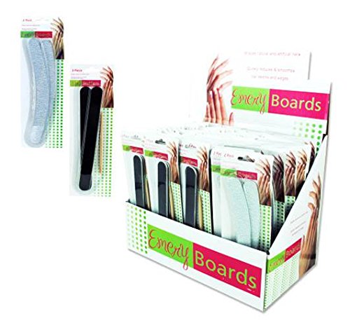 Studio : Kole Imports Publisher : Kole Imports Binding : Misc. Product Description Style will be chosen at random and may not match what is pictured. Includes two different packs in this counter top display. One pack contains two curved emery boards. Second pack contains two emery board with one cuticle pusher. Emery boards shape both natural and artificial nails. Quickly reduces and smooth's nail edges. Made from cardboard and wood. Black, brown and silver color. Weight: 0.09 lbs.. 0