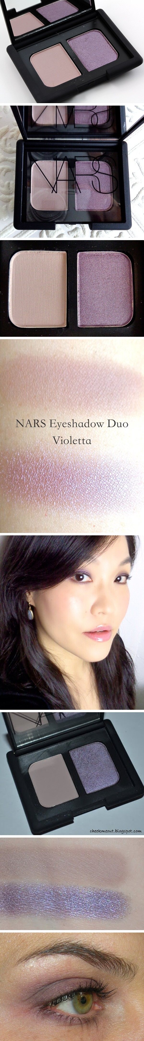 NARS经典裸色眼影之一,米肤色加鸽子灰紫色,亚光底带少量低调闪粉。