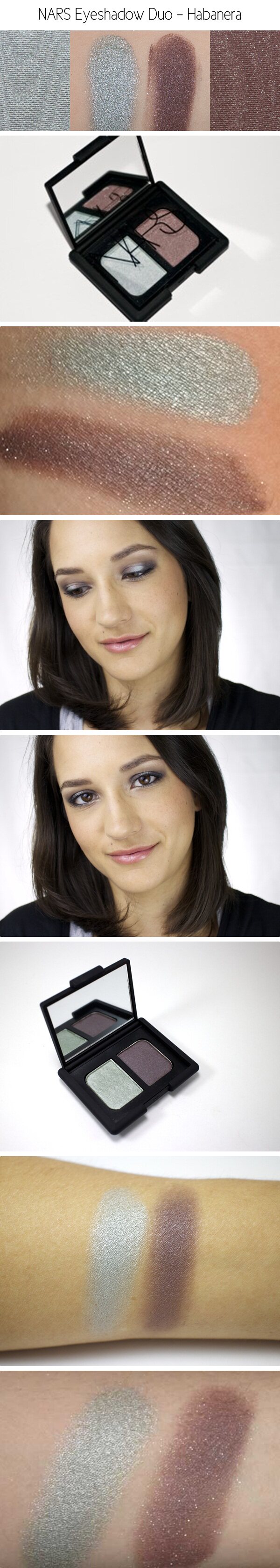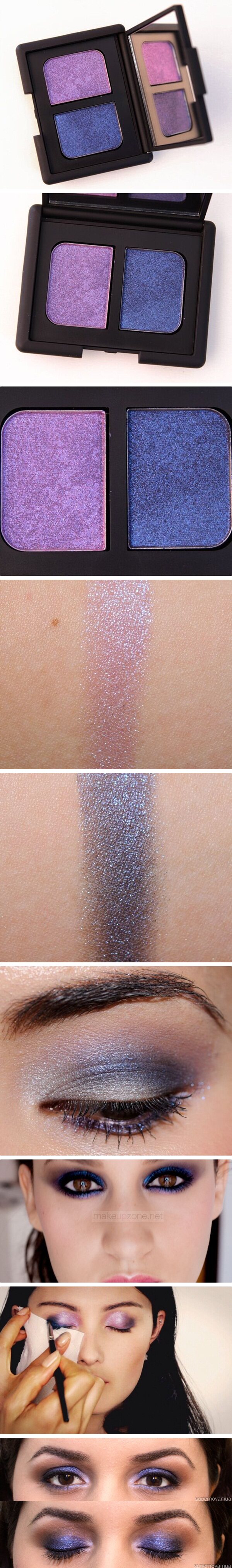 薄荷银蓝绿配银闪紫褐色。NARS最美的双色配色之一,浅色边非常显色,薄薄刷一层就能覆盖眼皮底色。深色紫褐边相对sheer一些,带有大颗闪粉,用来叠眼线或化眼窝很漂亮。