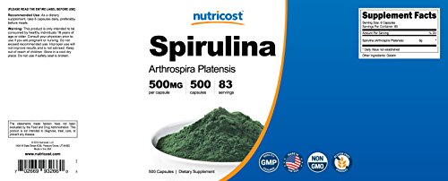 (Nutricost)/Vitamins Dietary Supplements/Supplements/DIRECT FROM USA/Nutricost Spirulina 500mg, 500 Caps (2 Bottles)
