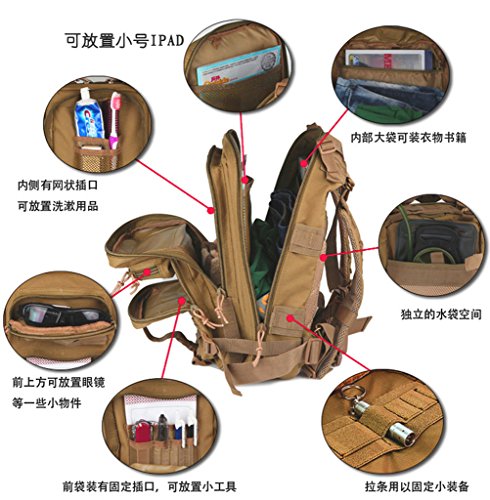 -. Binding : Misc. -. Brand : ZIOOER -. Feature : Heavy-Duty Water resistant Nylon pack cloth construction and heavy-duty oversized zippers for extra durability / Adjustable carrying system makes it possible for users to adjust the backpack to optimal position and reduce fatigue owing to heavy load effectively. / Chest belts can adjust distance between the two shoulder straps and strengthen the stability of the backpack.Adjustable & removable chest belt and hip belt. / The waist belts which can disperse the load to the lumbar area more effectively. It makes the backpack more comfortable. / Breathable mesh backing for comfort.It is propitious to breathe. Enhanced back support for ventilation and comfort -. Label : ZIOOER -. Manufacturer : ZIOOER -. ProductGroup : Sports -. ProductTypeName : SPORTING_GOODS -. Publisher : ZIOOER -. Studio : ZIOOER -. Title : ZIOOER Military Rucksacks Tactical Molle Backpack Camping Hiking Trekking Bag Sport Outdoor Kit