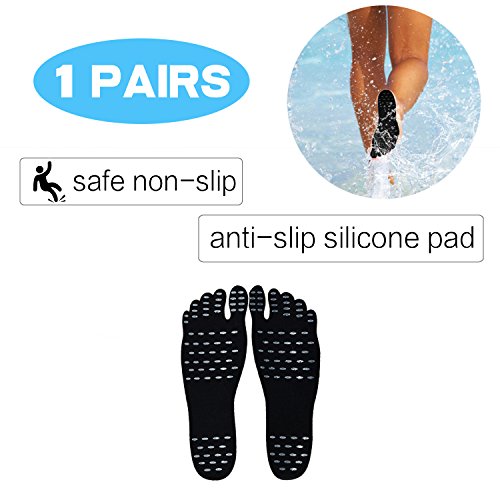 Invisible Stick Shoes Nakefit Barefoot Adhesive Foot Pad Waterproof Non-Slip Foot Protector Apply For Beach Outdoor Pool Spa Pool-BaouBow(M, Black)