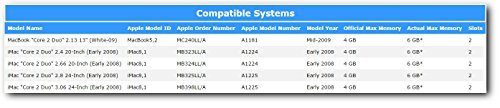 - Designed For iMac, MacBook Models:Early 2008 Mid-2009 MB323LL/A MB324LL/A MB325LL/A MB398LL/A MC240LL/A A1181 A1224 A1225 iMac8,1 MacBook5,2