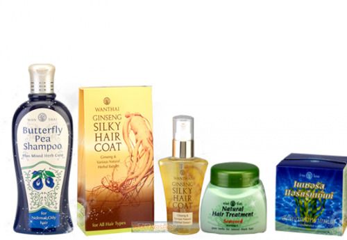 Size : Wanthai Butterfly Pea Shampoo 300ml + Natural Hair Treatment 250 g. + Wanthai Ginseng Silky Hair Coat 85ml.