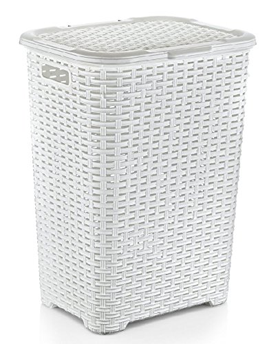 -. Feature : High caliber plastic laundry hamper / 1.70 Bushel 60 Liter / Large size holds plenty of laundry / Decorative basket-weave design / Matching laundry baskets, trash bins and toilet brushes available