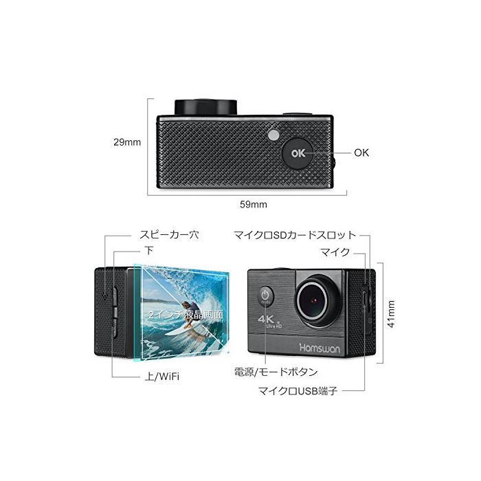 원본상품명: HAMSWAN F68 4K高質 16MPウェアラブルカメラ アクションカメラ 30m防水WiFi 2インチ170角ダッシュボドカム、Gセンサ搭載ルプ64GB水中カメラ アウトドアサ