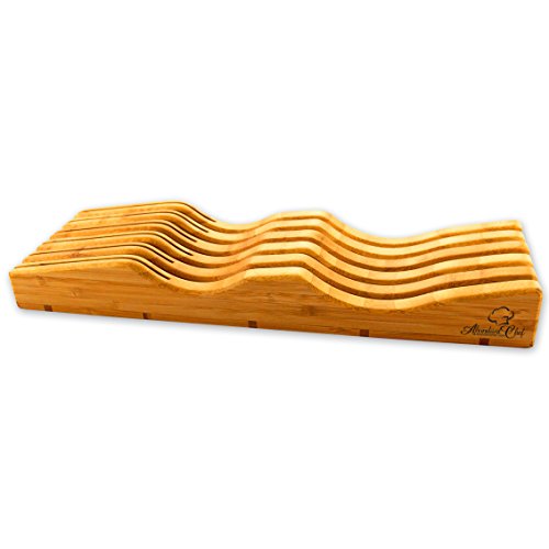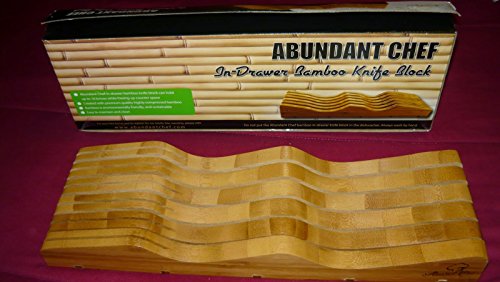 -. Brand : Abundant Chef -. Color : golden brown -. EAN : 0885575246707 -. Feature : In-drawer knife block can hold 10-15 knives (up to 16 knives depending on size and design of the knives) / Made with eco-friendly, bacteria resistant, highly compressed, Moso bamboo / 17 inches x 5.25 inches x2 inches (fits most common knife drawers) / Easy to wash and maintain / Adds space to your countertop! -. Label : Abundant Chef -. Manufacturer : Abundant Chef -. Model : BAMBOO1 -. MPN : BAMBOO1 -. PackageQuantity : 1 -. PartNumber : BAMBOO1 -. ProductGroup : Kitchen -. ProductTypeName : KITCHEN -. Publisher : Abundant Chef -. Size : 16.9 X 5.3 X 1.9 -. Studio : Abundant Chef -. Title : Abundant Chef® In-Drawer Bamboo Kitchen Knife Storage Block, Organizer and Holder Premium Quality! -. UPC : 820103725606