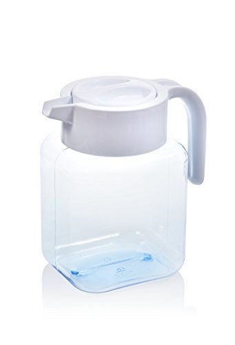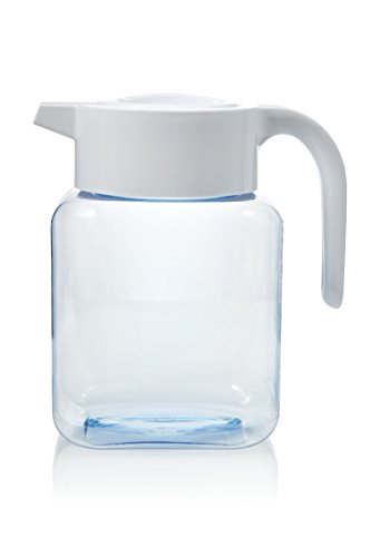 Unique space saving 2.25 Quart Pitcher fits neatly on refrigerator door or shelf. Designed with secure screw-on handle and large opening for mixing and adding ice.