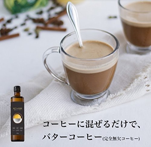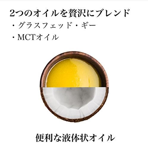 【2本セット】【液体オイル】適量をコーヒーに入れるだけでバターコーヒーをお楽しみ頂けます。リキッドタイプ【液体】ですからスプーンは不要ですし、冬季を含め1年を通じて【液体】のままですから取扱も容易です。賞味期限:常温で製造より2年。◆MCTオイル:シンガポール産/グリセリン等の添加物【不使用】・化学的製造工程【不使用】・自然派タイプ(ココナッツ由来100%・中鎖脂肪酸率100%) ◆ギー:オランダ産/グラスフェッド・バター100%使用。 【ギーの乳脂肪結晶がビンの底に沈殿していることがあります。品質に問題はありません。沈殿している場合は、軽く振ってからお使い下さい】