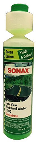 SONAX Clear View is a highly concentrated cleaner additive for the windscreen washer during the summer. Bottle contents of 250 ml will yield 25 liter's of cleaning solution. Removes insects, oil, grime, silicone, and dangerous dazzling and greasy films. Compatible with plastics and –does not cause tension cracks/dull spots on headlamp diffusers. Also well suitable for XENON headlamps and plastic diffusers in clear glass design. Suitable for fan jet nozzles. Can be mixed with tap water (all hardness degrees) thanks to anti-lime effect. With a fresh Green Lemon scent.