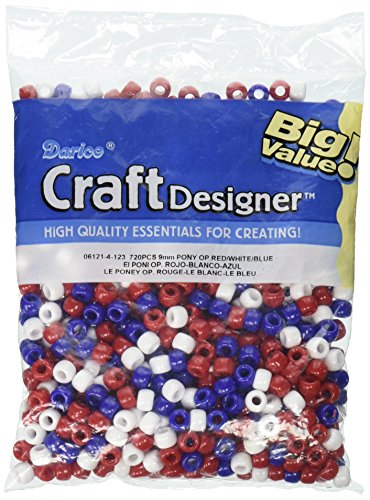 Pony Beads 6 by 9mm 720/Pkg, Red/White/Blue