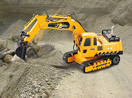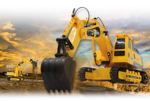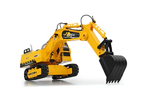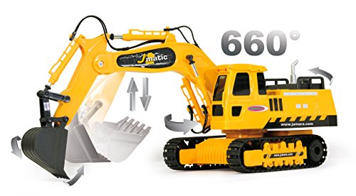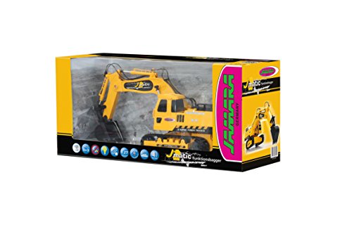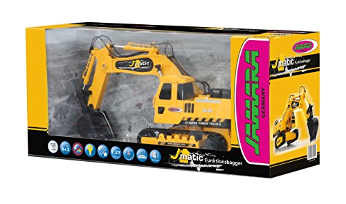 Jamara 404920 - Bagger J-Matic 1:27 2,4GHz - Realistischer Motorsound, Hupe, Ruckfahrwarnsound, 660 ° Turmdrehung, programmierbare Funktionen mit Wiederholung, Autoabschaltfunktion