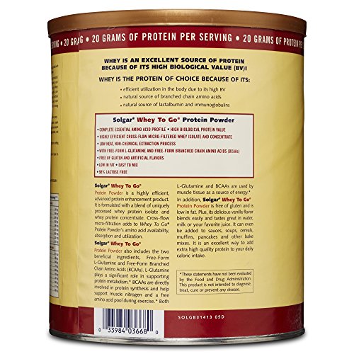 SUPERIOR CREATION: Solgar Whey to Go Protein Powder is a highly efficient, advanced protein enhancement product. It’s formulated with a blend of uniquely processed whey protein isolate and whey protein concentrate. Cross-flow micro filtration adds the amino acid availability, absorption and utilization