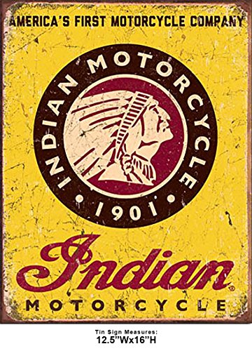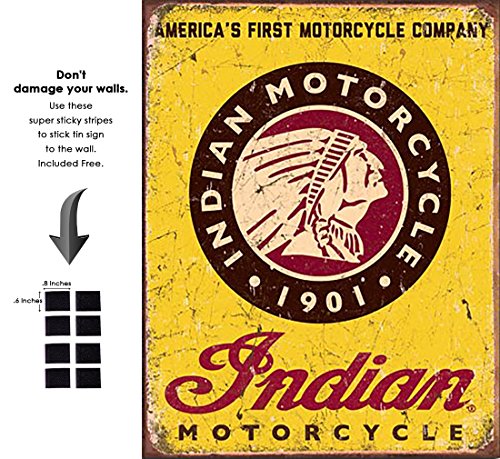 Shop72 - Indian Motorcycles Since 1901 Tin Sign Bikes Tin Sign Retro Vintage Distrssed - With Sticky Stripes No Damage to Walls